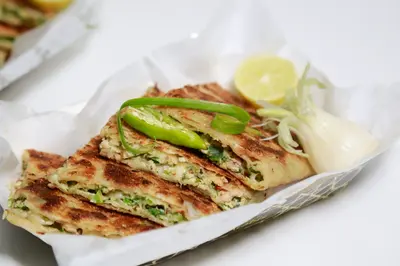 Serves-1 Savory paratha filled with barbecue-flavored meat or vegetables, delivering a smoky and tangy taste sensation