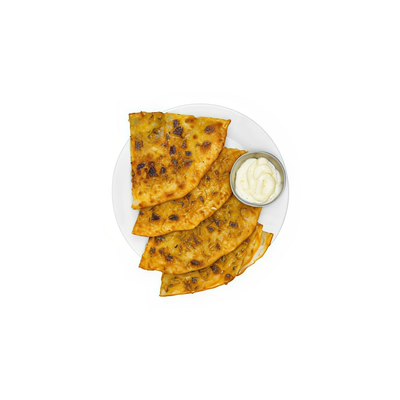 Serves-1 Fluffy paratha filled with mashed potatoes and gooey cheese, offering a delightful blend of flavors.