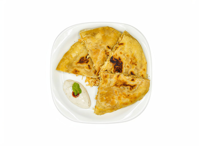 Serves-1 Delectable paratha stuffed with tender chicken chunks and melted cheese, creating a flavorful combination.