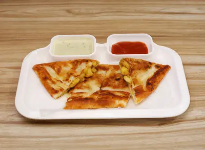 Serves-1 Paratha filled with classic pizza ingredients like cheese, tomato sauce, and herbs, offering a fusion of Indian and Italian flavors.
