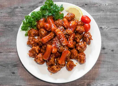 Served 1-2, Chinese-style chicken dish.