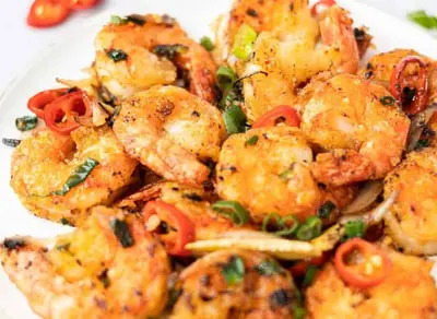 Served 1-2, Spicy prawns cooked in a wok.